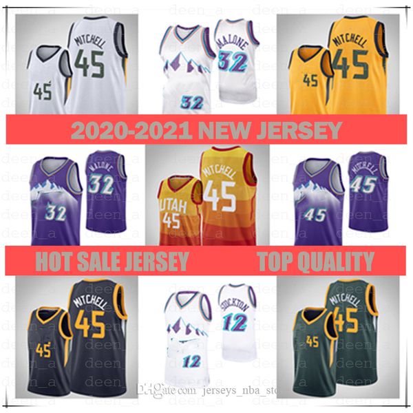 men 2021 jersey 45 donovan mitchell27 rudy gobert12 john stockton32 karl malonejersey basketball, Black;red