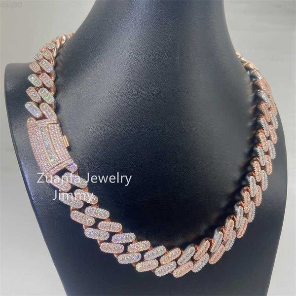 men 925 sterling silver vvs1 moissanite diamond cuban link chain iced out 15mm two tone cuban link