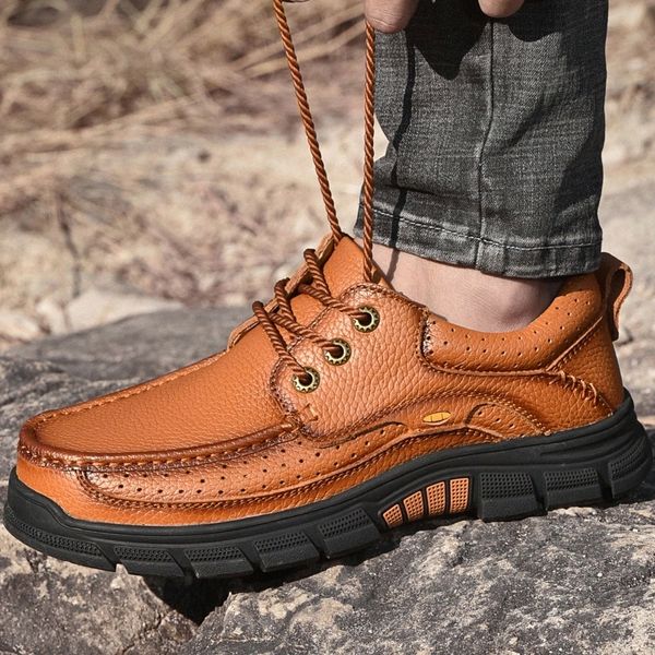 men casual shoes outdoor men's handmade business shoes genuine leather lace-up male oxfords wear-resistant breathable shoes #4p8z