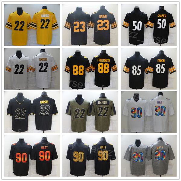 men football 22 najee harris jersey 88 pat freiermuth 50 ryan shazier 90 tj watt 23 joe haden 85 eric ebron rainbow leopard grain smoke army, Black;red