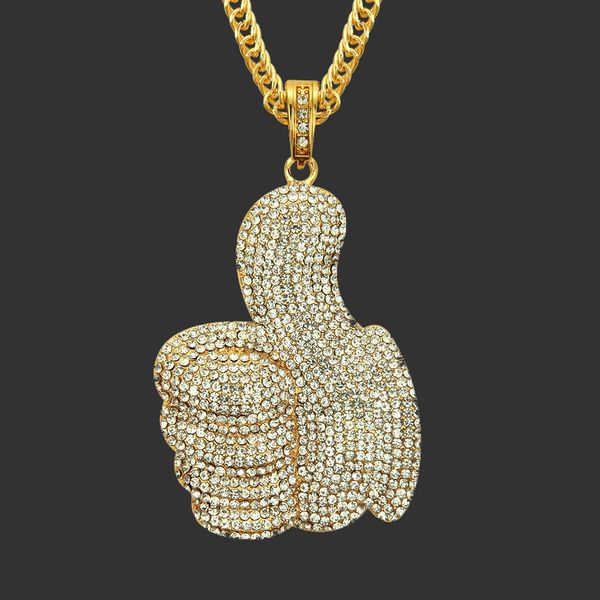 men for chains pendant hip hop amulet neck s creative full diamond thumb stick trendy man necklace, Silver