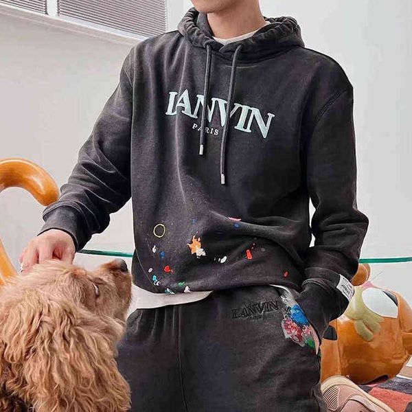 men hoodies for designer hip hop dept co branded letter embroidered hoodie high street washing water old splash ink and women, Black