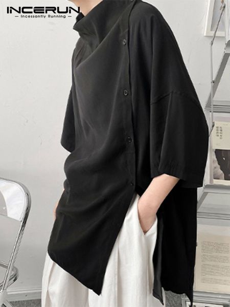 men s casual shirts handsome well fitting solid color turtleneck half sleeve button up camisa masculina s 5xl incerun 2023 230330, White;black