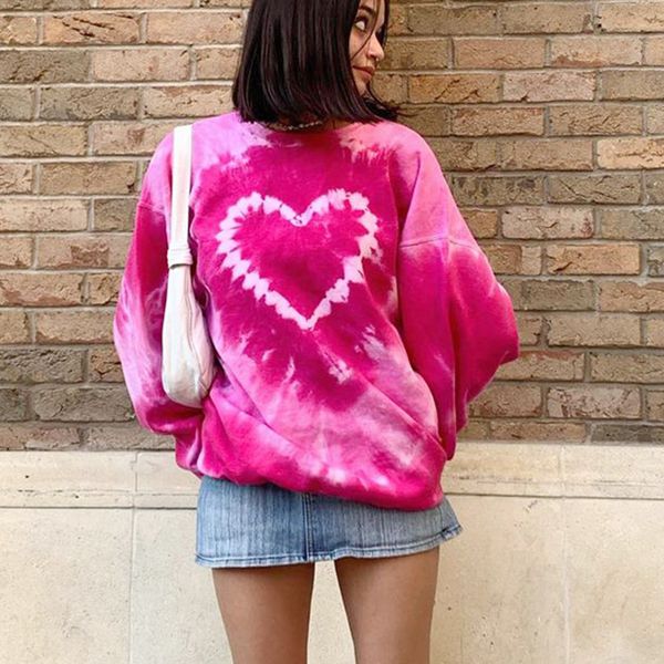 men s hoodies sweatshirt tie dye pullover fashion oversized pink love heart print e girls casual loose long sleeve o neck 230822, Black