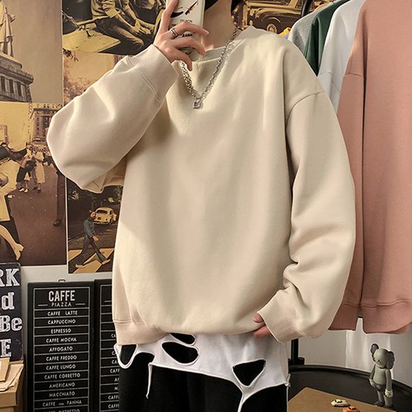 men s hoodies sweatshirts 5xl oversized korean style mens baggy pullover fashion streetwear solid wild autumn winter sweatshirt 230223, Black