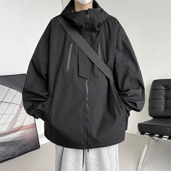 men s jackets autumn fashion techwear men oversized streetwear outdoor hooded waterproof windbreaker black army tactical outerwear 230724, Black;brown