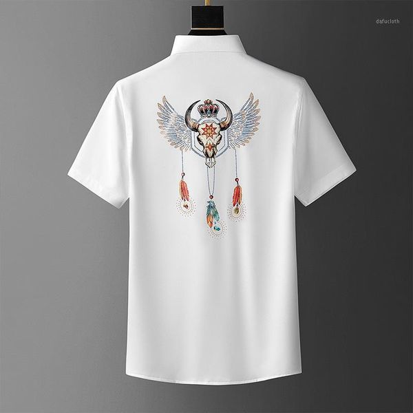 men shirt print drilling trend european short sleeve summer business formal wedding groom shirts dress men's casual, White;black