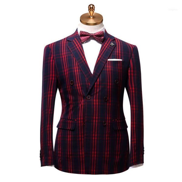 men suit 2021 autumn winter double breasted mens suits with pants for wedding groom 3 piece set red plaid business casual wear1, White;black