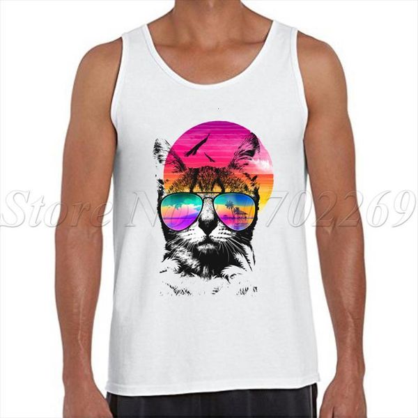 men summer cat printed tank sleeveless cool vest fashion bodybuiding clothing fitness shirt casual funny singlets, White;black