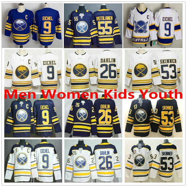men woman kids youth 2021 reverse retro buffalo sabres hockey jerseys #9 jack eichel 53 jeff skinner 26 rasmus dahlin 23 sam reinhart, Black;red