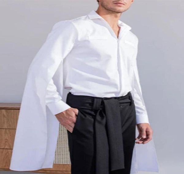 men039s casual shirts fashion men shirt lapel 2022 flare long sleeve button clothing solid streetwear irregular camisas s7782334, White;black