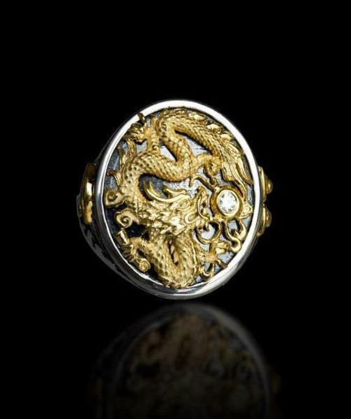 men039s gold two tone 14k black gold plated diamond dragon pattern rings personality punk ring jewelry3694619, Silver