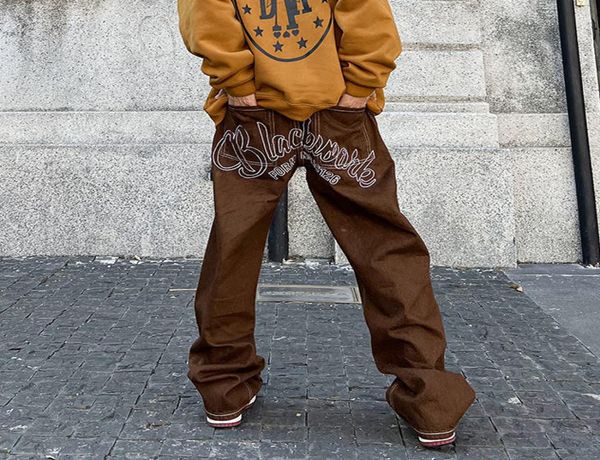 men039s jeans embroidery fashion brown mid rise baggy for men latest design star hip hop straight loose fit boyfriend pants y2k5321063, Blue