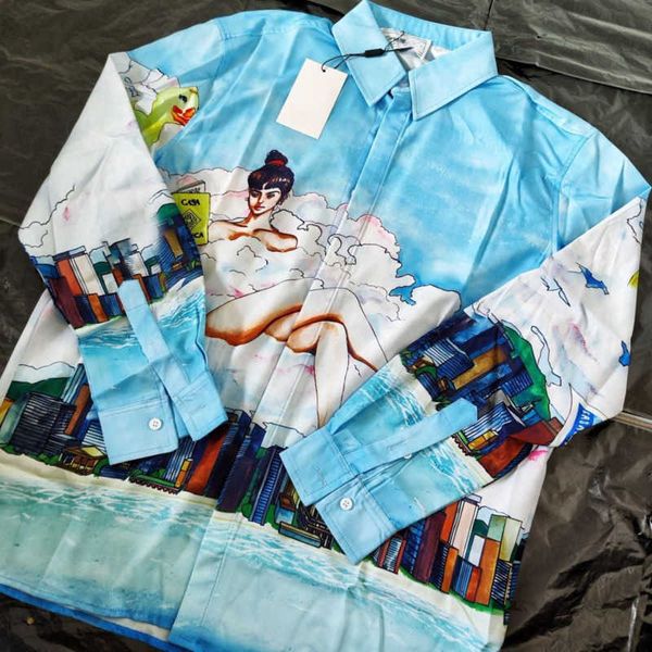 mens casual shirt casa designer shirts full print lapel silk shirt men women hip hop sweatshirt cardigan long sleeve top, White;black