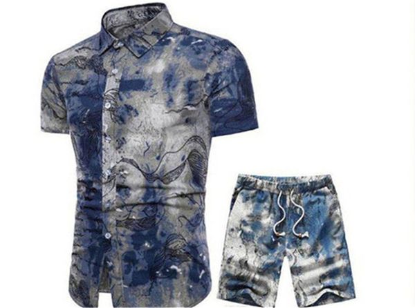 mens designer lapel neck short set vacation seaside holiday shirts shorts mans clothing sets 2pcs floral tracksuits, Gray