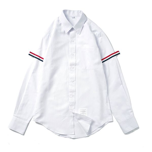 mens designer new style long-sleeved shirt tb shirt autumn and summer casual mens cotton shirt popular brand womens couples gown factory, White