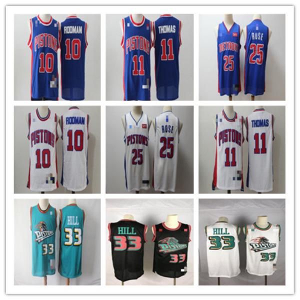 mens detroit pistons 33 grant hill 11 isiah thomas 10 dennis rodman 25 derrick rose basketball jerseys, Black;red