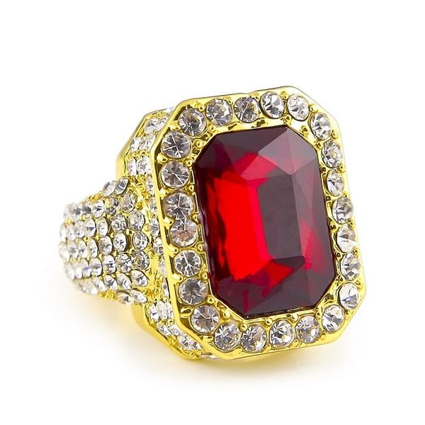 mens hip hop ring jewelry alloy ruby gemstone crystal gold hip-hop fashion punk rings, Golden;silver