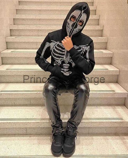 mens hoodies sweatshirts mens hoodies sweatshirts y2k jacket mens rhinestone skeleton sweatshirt korean fashion punk sport coat pullover sku, Black