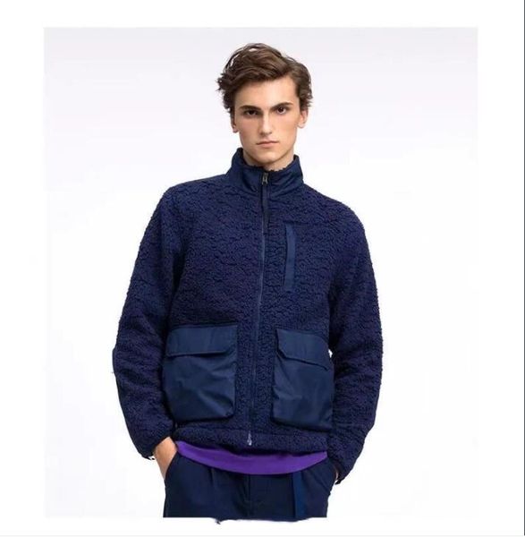 mens jacket lambs wool standup collar pocket jacket fleece warmth zipper embroidery logo men and women casual couple sports coat, Black;brown