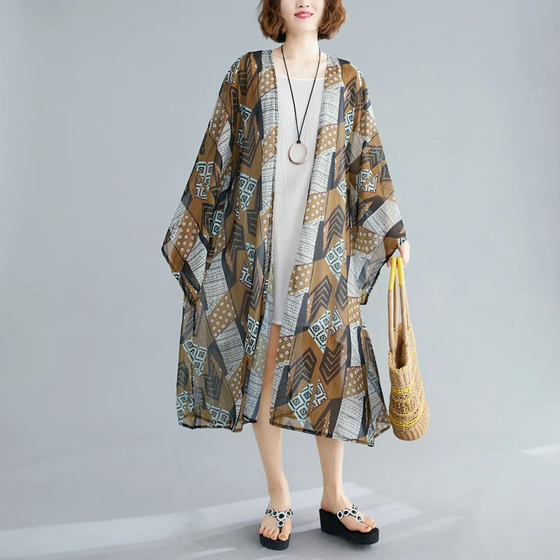 long cardigans women summer long loose cardigan woman chiffon geometric shirts
