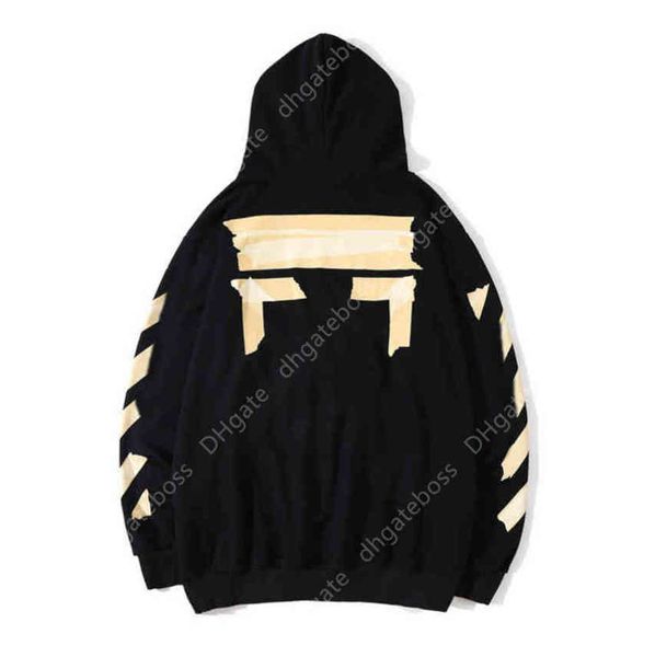 mens loose offs hoodies brand classic sweatshirts hoodie cotton pullover long sleeved back oil paint arrow x women hooded, Black