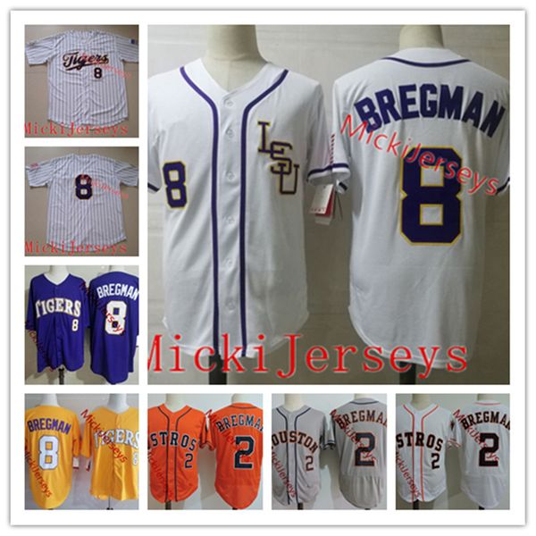 mens ncaa college #8 alex bregman lsu tigers baseball jersey embroidery #2 alex bregman jersey s-3xl, Black