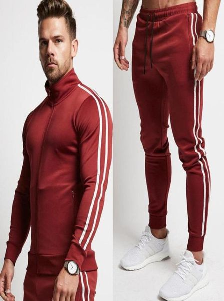 mens running sportswear sweatshirtsweatpants trousers gym fitness training jackets pants 2pcssets male joggers sports clothing8784461, Black;blue