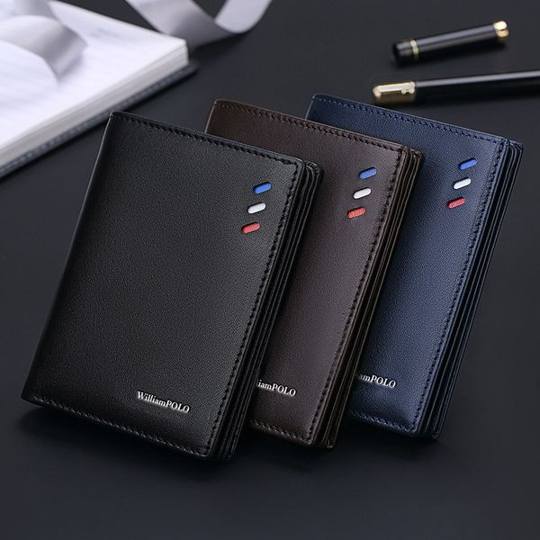 mens short leather wallet id card bag business multi-functional ultra thin card holder vertical fashion mini wallet coin bag, Brown;gray