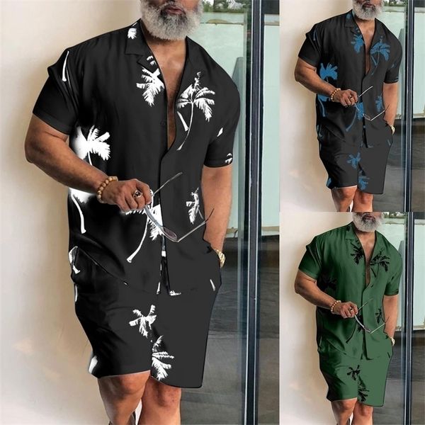 mens summer large size shirt set fitness outdoor twopiece suit andhome clothes pajamas comfy loose simple beach shirt sets 220606, Gray