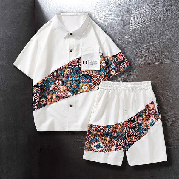 mens tracksuits 2 piece set national style patchwork summer clothes for shorts sets streetwear hip hop casual outfits 230503, Gray