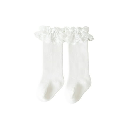 Binpure Infant Baby Girls Long Stockings Princess Cutout/Embroidery Lace Trim Socks Autumn Winter Cute Over-The-Knee Socks