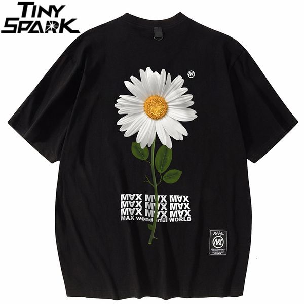 mens tshirts oversize t shirt hip hop harajuku daisy letter print tshirt men streetwear cotton loose tshirt short sleeve tees 230323, White;black