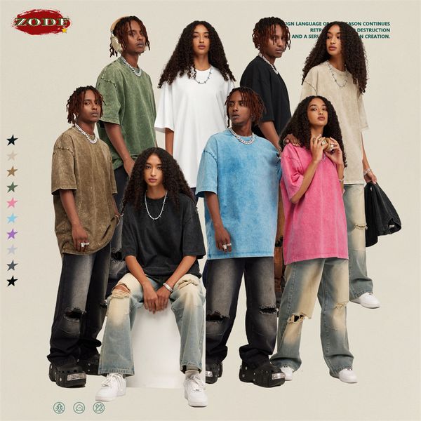 mens tshirts zodf summer men washed batik cotton t shirts american retro high street 285gsm short sleeve tees streetwear hy0489 230317, White;black