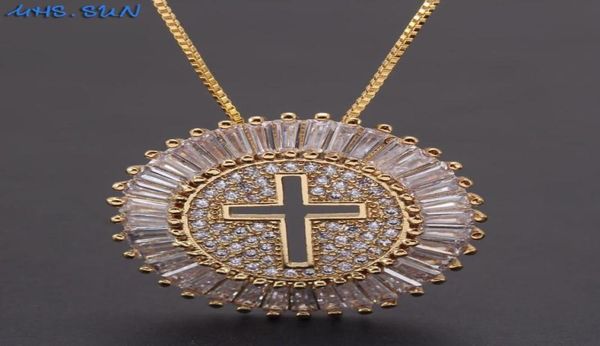mhssun luxury round cz zircon necklace catholic cross pendant chain necklace collier femme gold color jewelry christmas gift3750554, Silver