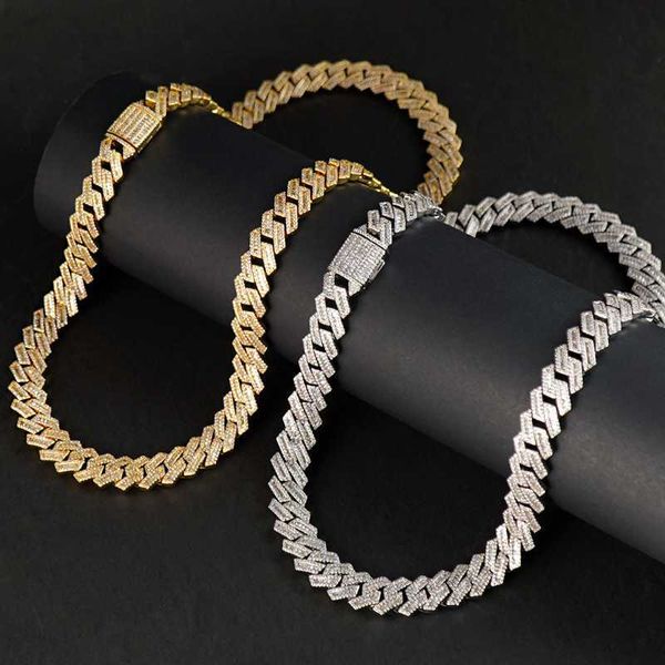 miami moissanite baguette chain iced out 12mm 15mm diamond baguette moissanite cuban chain necklace for men's hip hop jewelry, Silver