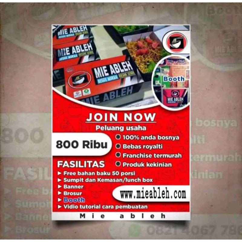 "MIE ABLEH" Mie level kekinian..MODAL USAHA CUMA Harga 1 paket pertama gabung cuma 300.000 :