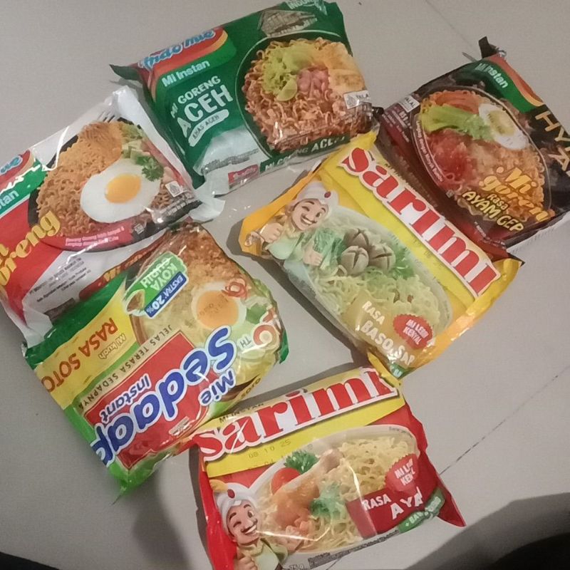 mie instant dengan berbagai varian , ( harga 1 pcs ) .........( bisa mix varian rasa silahkan tambahkan di catatan waktu co, misal indomie goreng 2 , mie sedap soto 3 dll )
