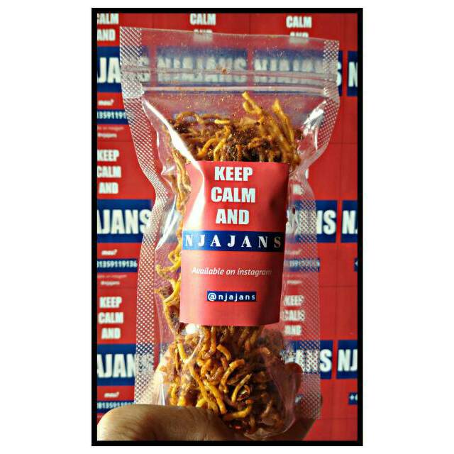 mie keriting pedas dengan sambal dan bumbu tabur