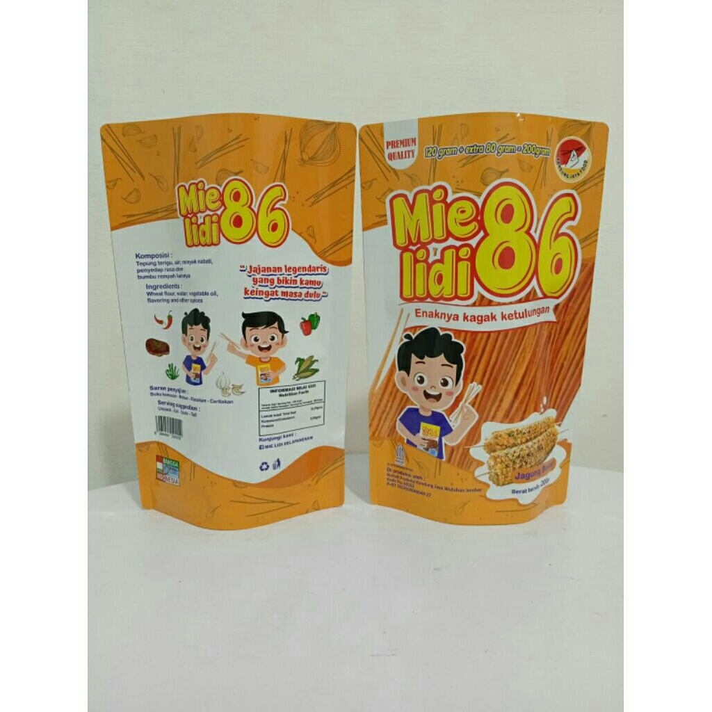 mie lidi 86 premium adalah brand camilan premium, mie lidi yang dikemas secara modern. Produk ini sudah lulus uji lab, Halal dan standart P-IRT, cocok untuk menemani aktifitas kalian dimanapun dan kapanpun karena kemasan yang aman, praktis dan mudah dibawa. mie lidi 86 premium rasa pedas daun jeruk dengan cabai dan daun jeruk asli yang renyah, gurih dan nikmat, cocok intuk cemilan.