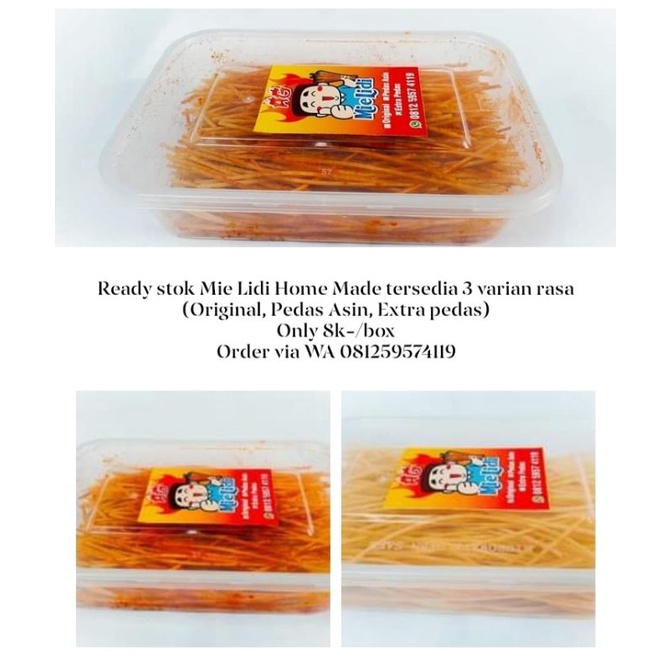mie lidi home made dengan 3 varian rasa originan.pedas asin.dan ekstra pedas