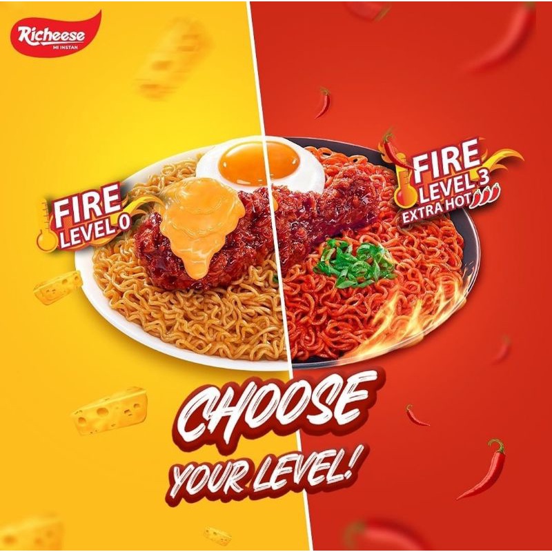 mie goreng rasa keju pedas level 3 dan 5. dan juga originall