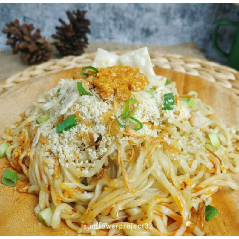 mie khas jember, mie telor yang di bumbui dengan bumbu dan minyak rahasia, serta taburan ayam yang telah di olah , bawang daun, bawang goreng, dan pangsit goreng serta tambahan sambal bawang