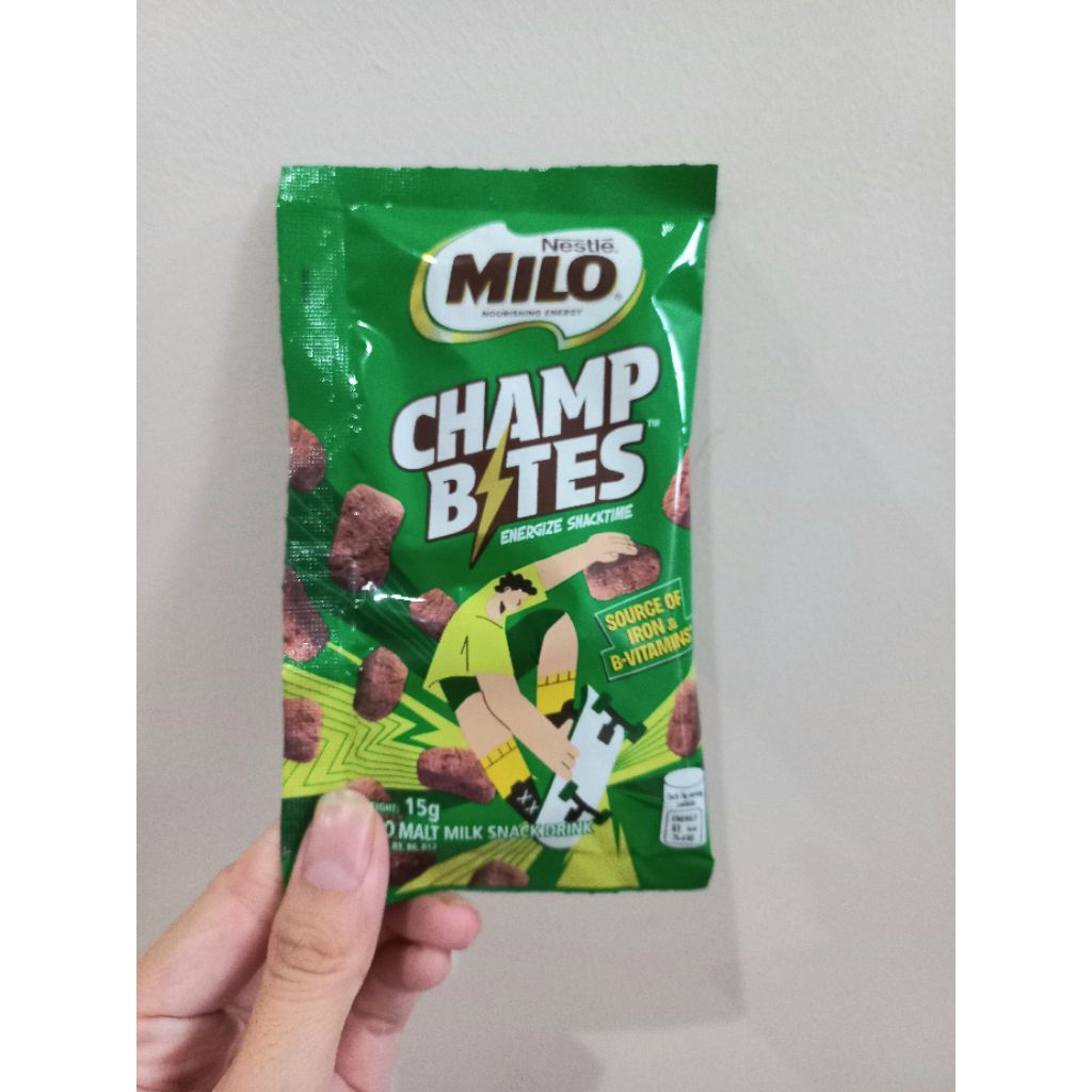 milo chanp bites ini enak..bisa di cemil begitu aja maupun ditambahn susu cair juga enak