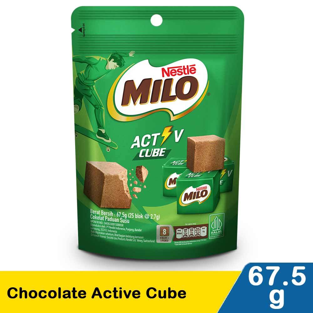 Baru, MILO Activ Cube! Minuman MILO kesukaanmu kini hadir dalam snack yang seru! Dengan gaya baru berbentuk dadu, rasakan gigitan MILO Activ Cube yang nikmat untuk mengisi tenaga mu di hari yang sibuk. Dibuat dari kebaikan Malt, Susu, dan Cokelat, MILO Activ Cube dikemas dalam re-sealable pouch, sehingga mudah untuk dibawa, dimakan, dan di-sharing bersama teman-teman!