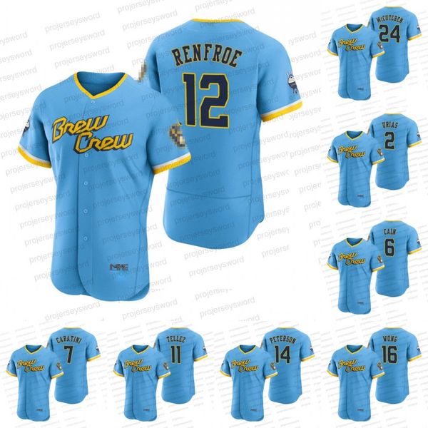milwaukee 12 hunter renfroe brewers 2022 city connect jersey 2 luis urias 7 victor caratini 10 omar narvaez 11 rowdy tellez 14 jace peterson, Blue;black
