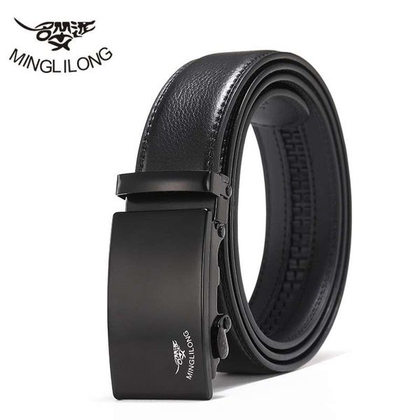 minglilong cool brand automatic buckle belts genuine leather belt for men fashion black men's belts split cow leather, Black;brown