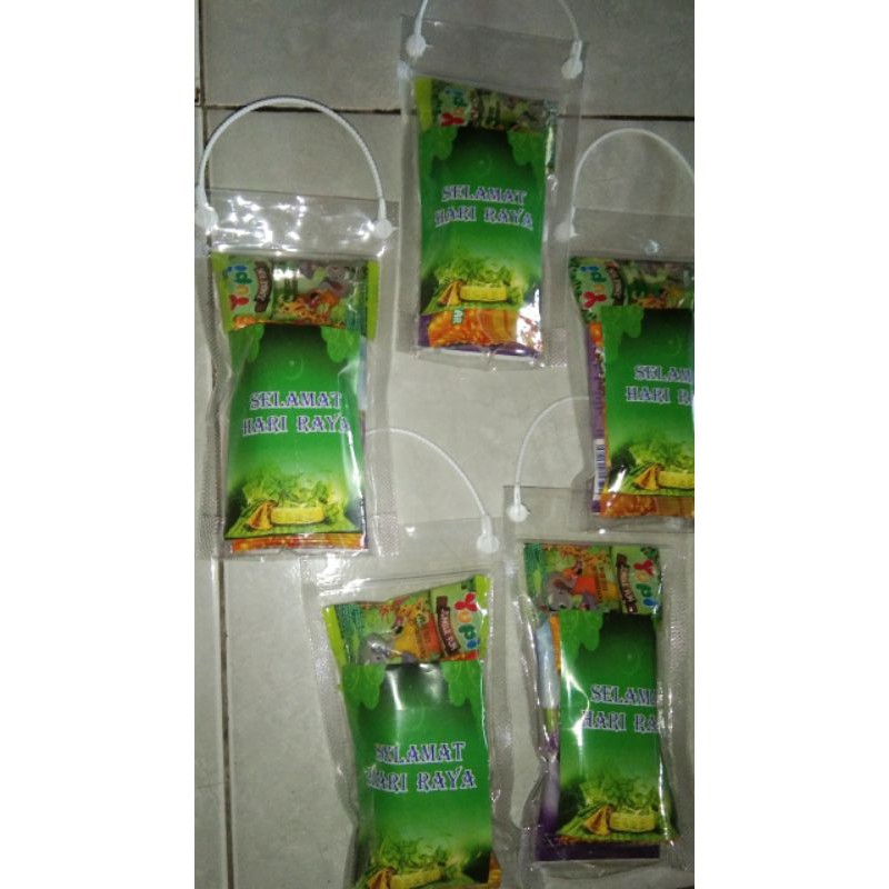 terdiri dari 3 snack,1 ampau lebaran,free uang 2k(bisa request snack asalkan masih ada stock)