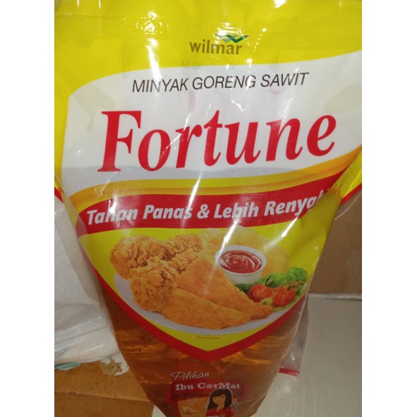 Minyak goreng fortune kemasan pouch ukuran 2 liter dan 1 liter. jika barang yang redi ukuran 1 liter akan dikirim dalam 2 kemasan.