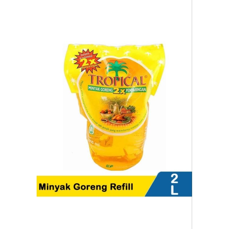 TROPICAL Minyak Goreng Pouch 2 L merupakan minyak goreng dari kelapa sawit pilihan yang diproses dengan dua kali penyaringan sehingga menghasilkan asam lemak tak jenuh dan menjadikannya tetap jernih, lebih tahan panas, dan tidak mudah tengik. Minyak goreng Tropical mengandung asam lemak tak jenuh (omega 9) yang mampu menurunkan kolesterol darah. Minyak goreng Tropical juga mengandung vitamin E sebagai antioksidan dan pro vitamin A.
